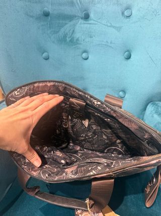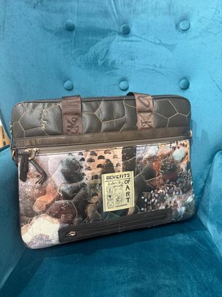 Bolso de la marca Anekke, perfecto para llevar documentos. Su diseño combina tonos marrones y multicolor. Totalment forrado interiormente y acolchado para portatil o tablet, Además trae la correa para poder llevar colgado ha hombre y apertura trasera para enganchar en maleta de viaje para su fácil traslado - Estampado artístico y acolchado. - Cierre de cremallera. - Asa de mano y correa ajustable.