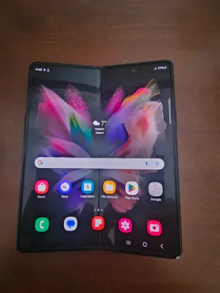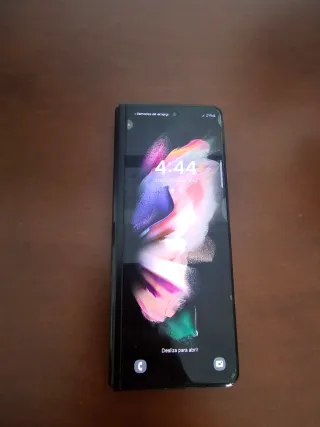 **ATENCIÓN - LEER BIEN** Vendo samsung galaxy z fold 3 en buen estado. Las dos oantallas están impolutas. Unicos defectos son los dos leves roces en las esquinas que se ven en las fotos y que la visagra (por suciedad) no abre al 100% hasta quedarse plano. Todo lo demás, pantallas, camaras, etc., funciona a la perfección. Batería con buena capacidad y duración. Vendo con caja y cable de carga compatible.