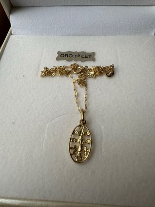 Elegante conjunto de collar con colgante de Cruz Caravaca y cadena. - Colgante de Cruz Caravaca. - Cadena de oro. - Sello de Oro 1ª Ley. - NUEVO - También esta por estrenar