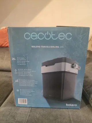 Nevera portátil Cecotec Bolero Travelcooling de 26 litros. Ideal para viajes y excursiones. - Capacidad de 26 L. - Funcionamiento a 12 V DC y 220 V AC. - Compatible con coches y caravanas. - Función de enfriamiento hasta 8 °C.