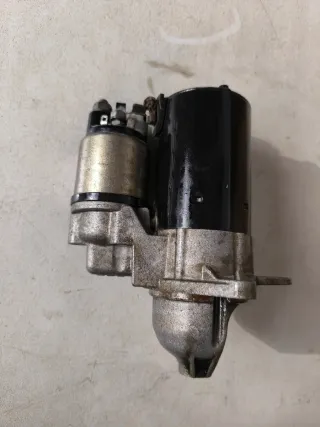 Motor de arranque para Opel Corsa D con motor 1.2. - Pieza de recambio para el sistema de arranque del vehículo. - Carcasa metálica plateada y negra.