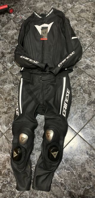 Mono de moto Dainese de dos piezas, completamente nuevo y sin estrenar. - Color negro. - Diseño deportivo. - Material de cuero. - Piel de ternera - Me lo hicieron pero me queda muy grande y no lo he usado esta nuevo a estrenar