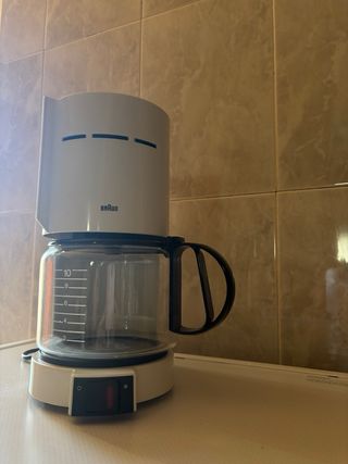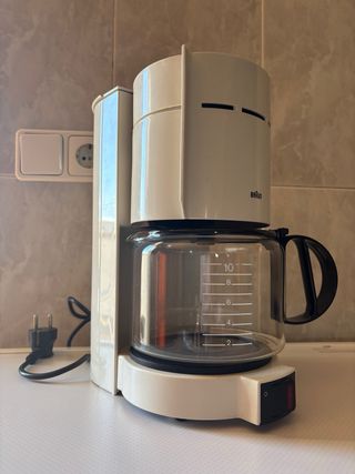 Cafetera de goteo Braun en color blanco. Ideal para preparar café de forma sencilla. - Jarra de cristal con medidor. - Interruptor de encendido/apagado.
