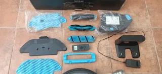 Robot aspirador Conga Cecotec 4090 Incluye todos sus accesorios originales como se puede ver en las fotos todos los accesorios que salen en la última foto están sin estrenar y los demás en perfecto estado aparte de los filtros que se ven en las fotos los depositos llevan sus filtros puestos cualquier cosa consultar - cepillos laterales (NUEVOS) - cepillo mixto (NUEVO) - cepillo de gomap(NUEVO) - cepillo de limpieza (NUEVO) - dos mopas (NUEVAS) - portamopas(NUEVO) - depósito mixto (NUEVO) - filtro depósito mixto (NUEVO) - filtro depósito de polvo(NUEVO) - Robot aspirador. - Base de carga. - Mando a distancia - Cepillo jali