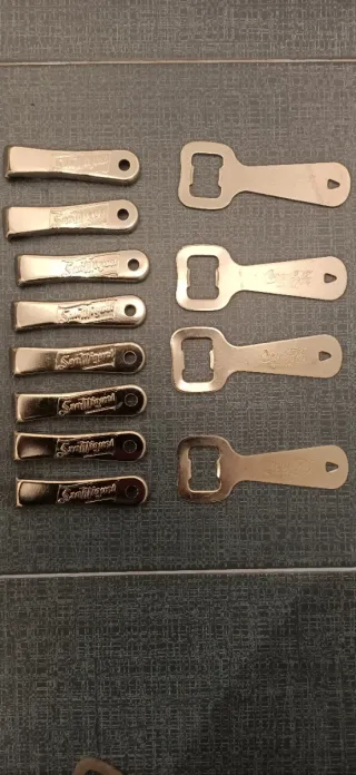 abrebotellas antiguos metálicos de la marca San Miguel y Coca-Cola Piezas con un diseño clásico y un toque vintage. - 5€ unidad - Fabricados en metal. - Logo de San Miguel grabado.