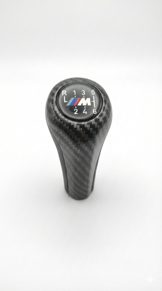 Pomo de cambio estilo BMW M con acabado en fibra de carbono, esquema de 6 velocidades. Palanca de cambio compatible con BMW manual, fácil instalación (Plug & Play) para la mayoría de modelos. Serie 1: E81, E82, E87, E88, F20, F21, F40. Serie 2: F22, F23, F44, F45, F46, F87. Serie 3: E30, E36, E46, E90, E91, E92, E93, F30, F31, F34, F80, G20, G21, G80. Serie 4: F32, F33, F36, F82, F83. Serie 5: E34, E39, E60, E61, F10, F11, F90, G30, G31. Serie 6: E63, E64, F06, F12, F13, G32. Serie 7: E32, E38, E65, E66, E67, F01, F02, F03, G11, G12. Series X: X1 (E84, F48), X3 (E83, F25, G01, F97), X4 (F26, G02, F98), X5 (E53, E70, E71, F15, G05,