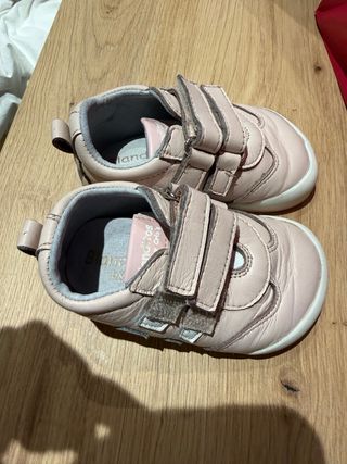 Esquís de madera para iniciación infantil con bastones - Marca: USKI - Material: Madera - Fijaciones ajustables con correas, a una de las correas ( se ve en la foto) le falta una pieza de cierre pero se ajusta bien