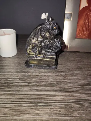 Original vela con forma de dragón, inspirada en la leyenda de San Jorge. Un detalle decorativo único. - Diseño detallado de dragón. - Acabado en negro y dorado.