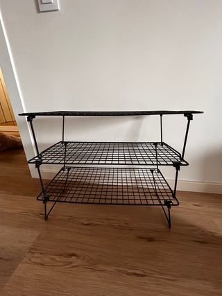 Práctico zapatero de tres niveles de Ikea. Ideal para organizar tus zapatos. - Diseño de rejilla. - Patas estables. Vendidas las tres unidades juntas