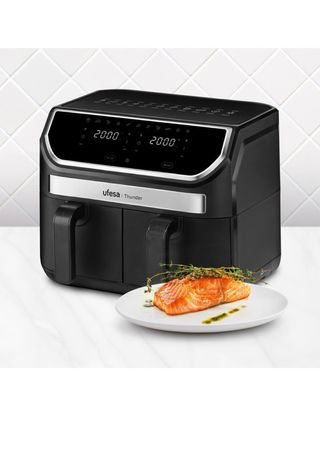 Precio amazon: 169,99 Ufesa Thunder Freidora de Aire sin Aceite con 2 Cubetas, 9L (4,5L + 4,5L), 11 Programas, 1700W, Control Digital, Temporizador, Temperatura 80ºC - 200ºC, Anti-Adherente