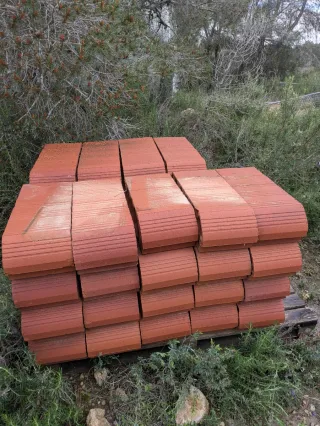 Piezas de cerámica para construcción, comúnmente conocidas como bovedillas. Son ideales para estructuras de techos y forjados. - Material: Cerámica - Color: Rojo terracota - Diseño: Hueco y acanalado