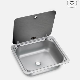 Fregadero de acero inoxidable con tapa. Camper o autocaravana Esta nuevo a estrenar, a mi no me entra. - Dimensiones: 410x335 mm. - Tapa con acabado texturizado. - Incluye desagüe.