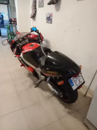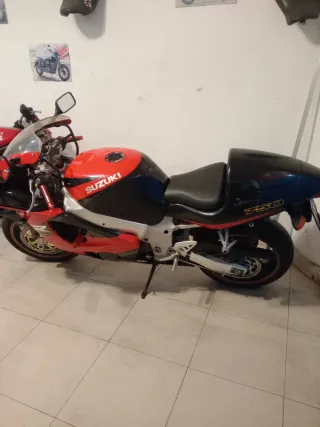 Moto deportiva Suzuki GSX-R 750 con caja de cambios manual. Y precio negociable - Diseño deportivo. - Combinación de colores negro y rojo.