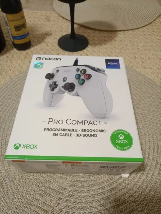 Mando Nacon Pro Compact en color blanco, diseñado para Xbox. - Cable de 3 metros. - Sonido 3D. - Ergonómico y programable.