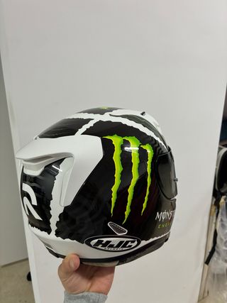 Casco de moto HJC con diseño Monster Energy. - Talla M. - Visera oscura - Logo HJC en la parte trasera. Mono alpinestar talla 50 Botas alpinestar talla 42 Guantes alpinestar talla m
