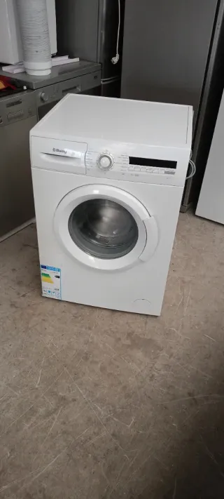 Lavadora Balay de carga frontal con capacidad de 6 kg. El electrodoméstico está en buen estado y funciona correctamente. - Color blanco. - Velocidad de centrifugado de 1000 rpm. - Panel de control con selector de programas y pantalla digital.