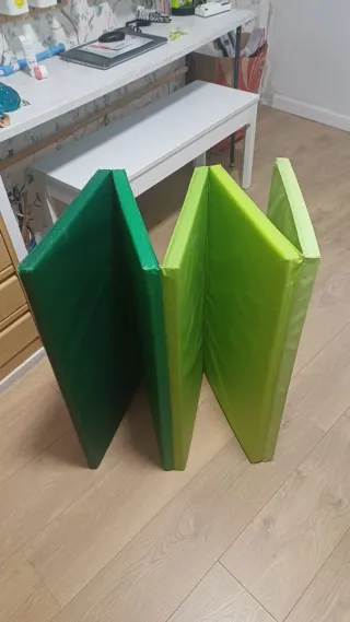 Colchoneta plegable de Ikea en dos tonos de verde. Es ideal para actividades o juegos. 78 de ancho, 185 de altura y 3 de grosor - Color verde oscuro. - Color verde lima.