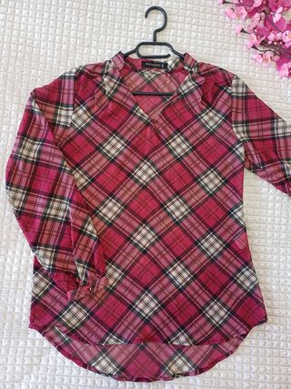 ÚLTIMOS DÍAS. SI TE INTERESA LA PRENDA NO DUDES EN CONTACTAR CONMIGO, CUANTO ANTES MEJOR PARA ORGANIZARME, POR FAVOR SERIEDAD, GRACIAS Preciosa camisa de Encuentro en color burdeos con estampado de cuadro escocés. Muy en tendencia. Detalle de la botonadura en color negro con el borde en dorado. Tiene la parte de atrás un poquito más larga que la de delante. Es preciosa. Talla S pero realmente es una M. NUEVA ENTREGAS EN MANO EN LA ENTRADA DEL CENTRO COMERCIAL ÉBOLI O FRENTE AL TEATRO EN PINTO. HAGO ENVÍOS. SI TE INTERESA VARIAS PRENDAS TE HARÉ UN LOTE.
