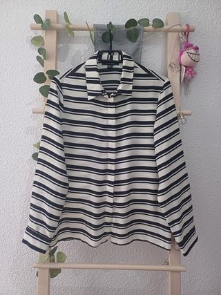 ÚLTIMOS DÍAS. SI TE INTERESA LA PRENDA NO DUDES EN CONTACTAR CONMIGO, CUANTO ANTES MEJOR PARA ORGANIZARME, POR FAVOR SERIEDAD, GRACIAS Preciosa camisa en tono crema o blanco roto a rayas negras. Tiene los botones en parte delantera de manera invisible. Talla M. NUEVA ENTREGAS EN MANO EN LA ENTRADA DEL CENTRO COMERCIAL ÉBOLI O FRENTE AL TEATRO EN PINTO. HAGO ENVÍOS. SI TE INTERESA VARIAS PRENDAS TE HARÉ UN LOTE.