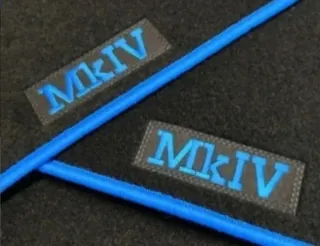 ALFOMBRACAR Juego de 4 Alfombras en Moqueta delanteras y traseras hechas a medida para Volkswagen Golf IV 4 Mk4 de 3 y 5 puertas modelos de 1998 a 2003, con logo MK IV contorno en lana cosida con hilo Azul, clips anclajes de fijación en las alfombras delanteras, talonera reforzada conductor, nuevas a estrenar. También disponible en nuestro perfil con el contorno en color Negro o Rojo... Este artículo es un artículo compatible, en ningún concepto se comercializa bajo la marca Volkswagen. Entrega en mano. Envío por Wallapop. ALFOMBRACAR
