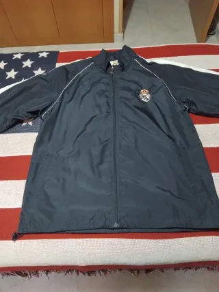 Cortavientos oficial del Real Madrid. - Diseño en color negro con detalles blancos. - Cierre de cremallera frontal. - Logo del club bordado en el pecho.