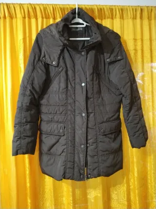 Chaqueta de mujer en color marrón, talla L. Un básico para tu armario. - Diseño acolchado. - Capucha integrada. - Bolsillos frontales con solapa. - Cierre de cremallera y botones.