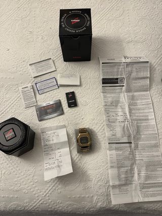 Elegante reloj de pulsera con correa de cuero. - Esfera blanca con detalles dorados. - Correa de cuero negra. - Mecanismo de cuarzo.