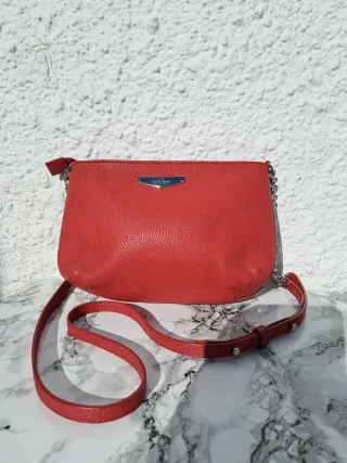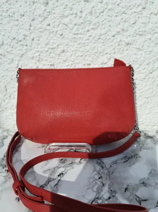 Bandolera de cuero en un vibrante tono rojo ceresa. Su diseño es elegante y práctico para el día a día. - Material: Cuero - Color: Rojo cereza - Correa ajustable - Cierre de cremallera y compartimento con cremallera al interior Dimensiones: largo 24 cm - altura 16 cm - profundidad 6 cm