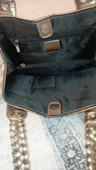 Bolso de mano con el clásico estampado de la marca. - Asa trenzada con detalle metálico. - Cierre de gancho. - Diseño elegante y atemporal.