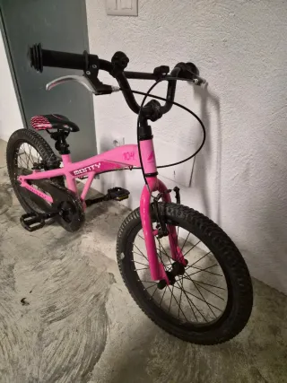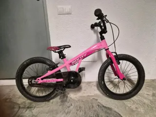 Bicicleta infantil Monty, ideal para los más pequeños. - Color rosa vibrante. - Sillín con diseño.