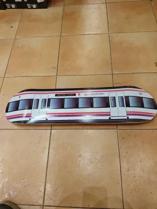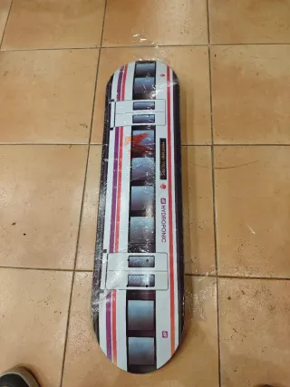 Tabla de skate 8.0 edición Montana colors con un diseño inspirado en un tren. - Diseño Hydroponic. - Estampado de tren en blanco, rojo y morado.