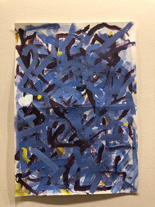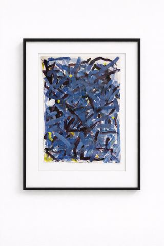 Una pieza de arte original con un estilo de expresionismo abstracto. Pertenece a la serie "Mareas internas" - Pintura acrilico sobre papel bambú - Predominan los tonos azules y multicolor.El cuadro presenta una composición densa de trazos entrelazados que crean una sensación de movimiento y energía cruda. Estéticamente, guarda similitudes con Joan Mitchell -Enmarcada en 50x70. Forma parte de una serie llamada "Mareas internas" Obra propia