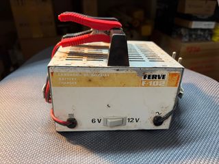 Cargador de baterías Ferve F-102. - Compatible con sistemas de 6V y 12V. - Incluye pinzas de conexión. - Fabricado en España.