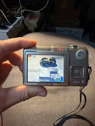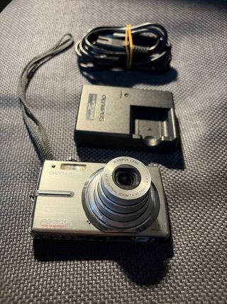Cámara digital Olympus FE-250 en color plata. Incluye cargador y cable. - Zoom óptico 3x. - 8.0 megapíxeles. - Alta sensibilidad. Bateria agotada no dura.