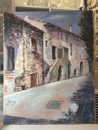 Pintura urbana. realizada con técnica acrílica. - Tonos beige y marrones predominantes. - Lienzo listo para colgar.