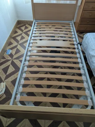 Cama articulada con somier de láminas de madera y estructura metálica. - Somier de láminas de madera. - Estructura metálica. - Mando para ajuste eléctrico.