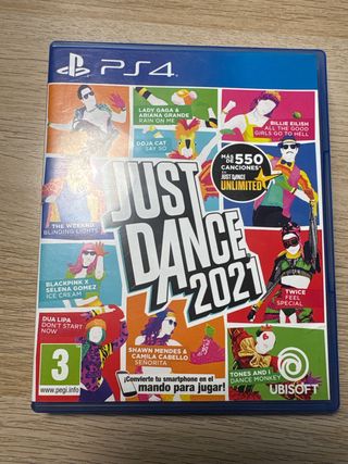 Videojuego Just Dance 2021 para PlayStation 4. - Incluye más de 550 canciones. - Acceso a Just Dance Unlimited. - Contiene canciones populares como Blinding Lights de The Weeknd, Rain on Me de Lady Gaga & Ariana Grande, Say So de Doja Cat, All The Good Girls Go To Hell de Billie Eilish, Ice Cream de BLACKPINK x Selena Gomez, Don't Start Now de Dua Lipa, Señorita de Shawn Mendes & Camila Cabello, Dance Monkey de Tones and I y Feel Special de TWICE. - Clasificación PEGI 3.