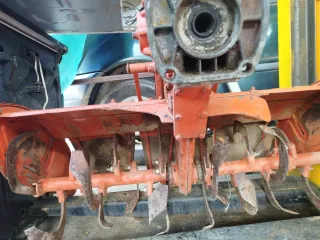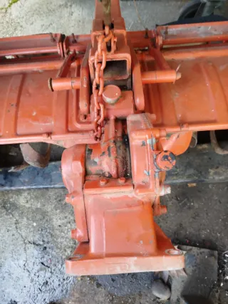 Rotovator de color naranja, diseñado para minitractores. Ideal para preparar la tierra. - Estructura robusta. - Enganche para minitractor.