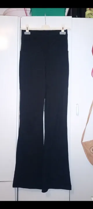 Leggins acampanadas de color negro. Son cómodos y versátiles. - Cintura alta. - Tejido elástico.
