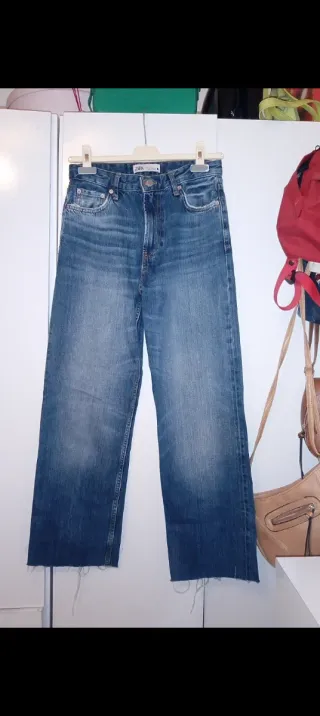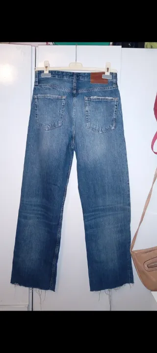 Pantalón vaquero de Zara. - Corte wide leg. - Bajo deshilachado. - Lavado desgastado.