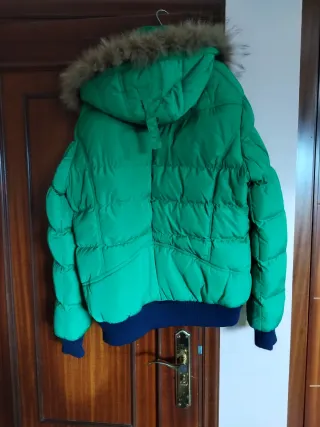 Chaqueta acolchada con capucha - Cierre de cremallera y botones. - Bolsillos frontales con solapa y cremallera. - Puños y bajo elásticos color azul marino El corchete de arriba está suelto