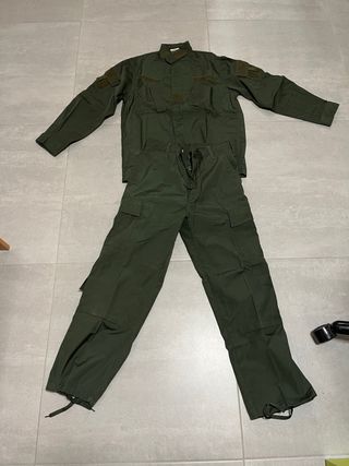 Uniforme de dos piezas para airsoft. es xs pero talla como s - Chaqueta con parches en las mangas. - Pantalón con múltiples bolsillos tipo cargo. - Cordones ajustables en los bajos del pantalón.