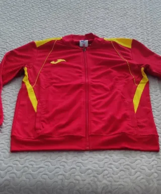 Conjunto nuevo de chándal deportivo de la marca Joma de talla M - Chaqueta roja con detalles amarillos. - Pantalón azul con detalles amarillos.