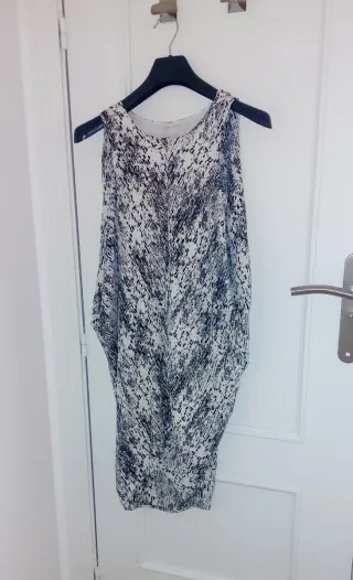 Vestido de H&M con un diseño tipo globo y estampado abstracto. Muy original - Diseño sin mangas. - Corte holgado y favorecedor. - Estampado en blanco y negro.