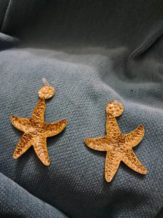 Pendientes con diseño de estrella de mar dorados. - Acabado dorado. - Diseño texturizado. Son preciosos, muy elegantes. Tengo muchas más joyas preciosas en mi perfil. Están nuevos, sin estrenar.