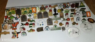 Lote de pines coleccionables de diferentes parques naturales y lugares de interés. - Pines con diseños variados. - Incluye pines de Sierra de Grazalema, Bahía de Cádiz, Los Alcornocales y Breña y Marismas de Barbate. - Algunos pines muestran monumentos o paisajes característicos. - Varios pines con motivos florales, como rosas. - Incluye un pin con la figura de Blancanieves.