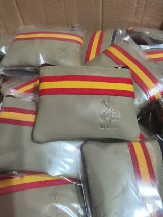 Monedero con diseño inspirado en la Legión Española. - Tira decorativa con los colores de la bandera de España. - Grabado del emblema de La Legión. - Cierre de cremallera. - 2 cremalleras - Auténtico trabajo de artesanía con cuero de vacuno,echo en Ubrique