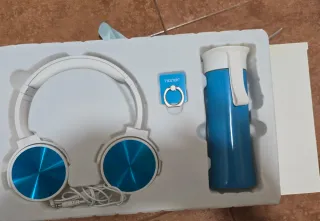 Set de accesorios de la marca Honor. - Auriculares blancos con detalles en azul. - Termo azul con asa blanca. - Soporte para móvil con anillo y logo de Honor. Sin estrenar. La caja está en las condicones que se ven en las fotos. SOLO ENVÍOS - NO ENTREGA EN MANO