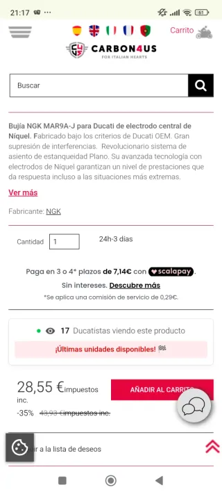 Bujía NGK MAR9A-J diseñada para motocicletas Ducati con motor de electrodo central de níquel. Fabricada bajo los criterios de Ducati OEM. Están nuevas la vendo por venta de moto vale. A 28.50e cada una.vendo las dos 50€