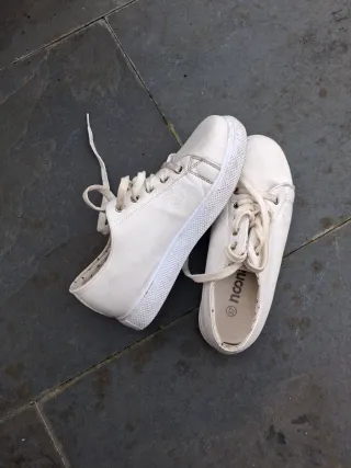 Zapatillas de lona blancas, talla 37. Perfectas para el día a día. - Cierre con cordones. - Suela de goma.